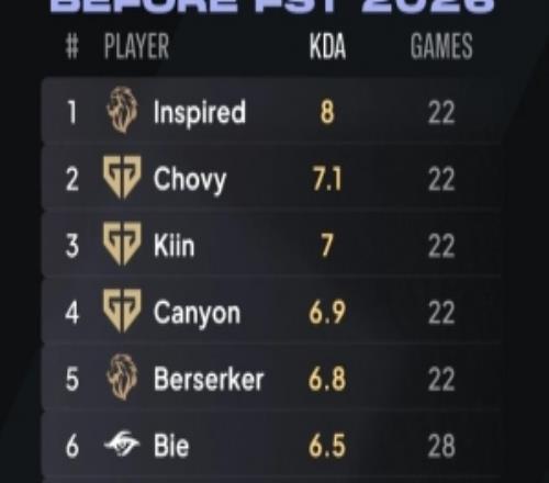 外媒统计先锋赛选手KDA前八:Inspired第一GEN五人均上榜