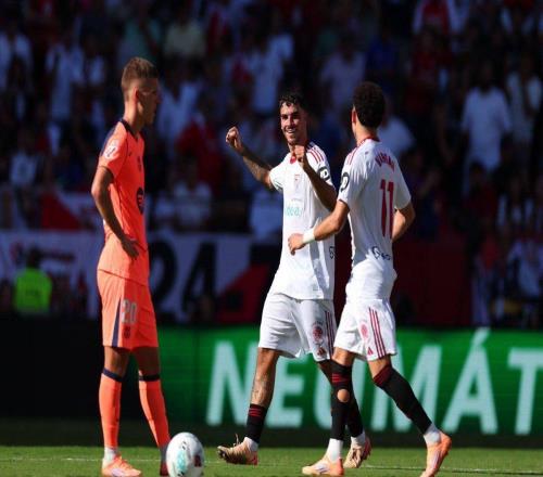雷速体育10月6日宣 西甲第8轮,塞维利亚在主场以4-1的比分战胜巴塞罗那。桑切斯、罗梅罗、卡莫纳、亚当斯各...